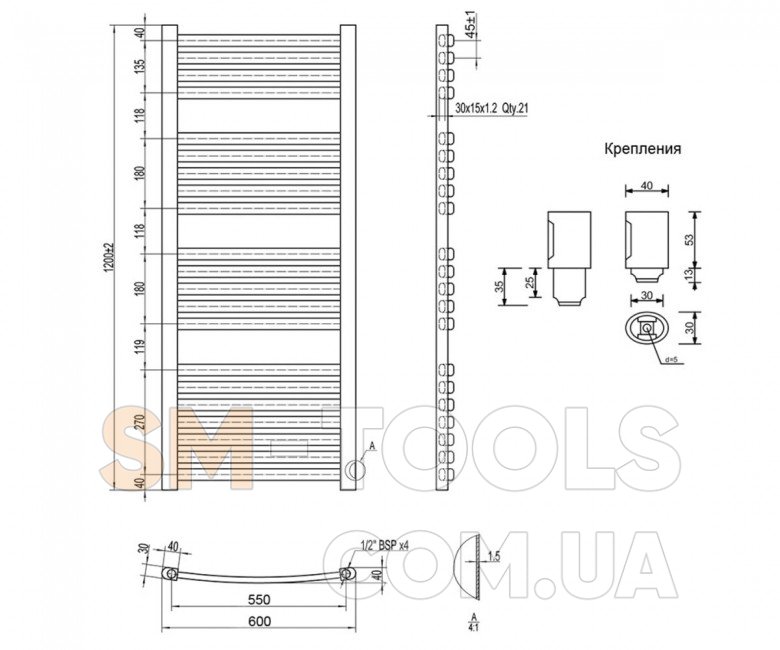 Комплектация Полотенцесушитель Q-tap Dias (WHI) P21 1200x600 HY (QTDIASWHIP211200600HY):