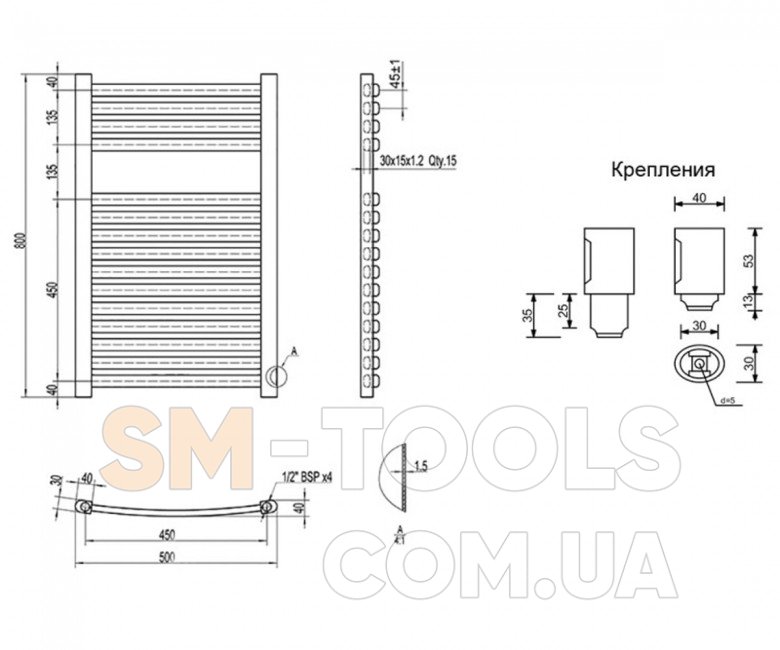 Комплектация Полотенцесушитель Q-tap Dias (SIL) P15 800x500 HY (QTDIASSILP15800500HY):