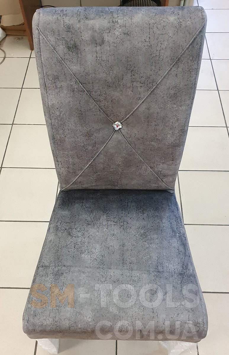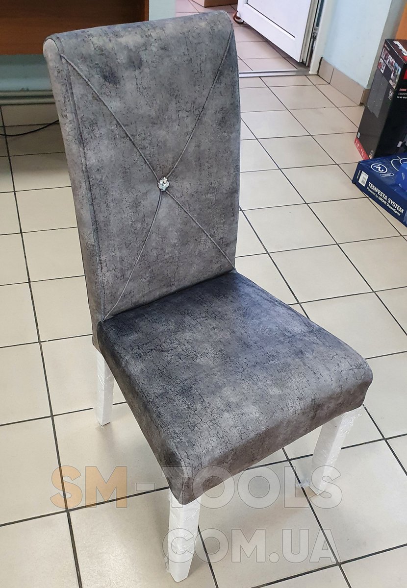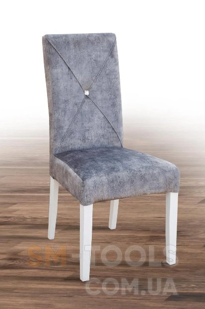 Стул Димас изготовлен из массива Бука, мягкие сидение и спинка обтянуты тканью серого цвета, спинка декорирована стразом.