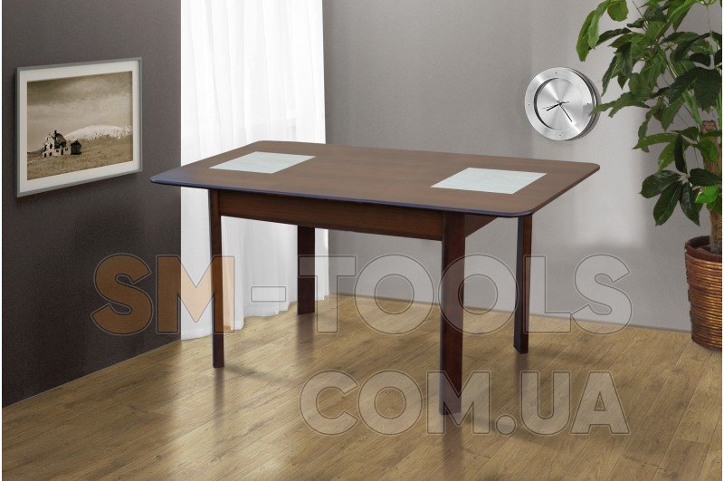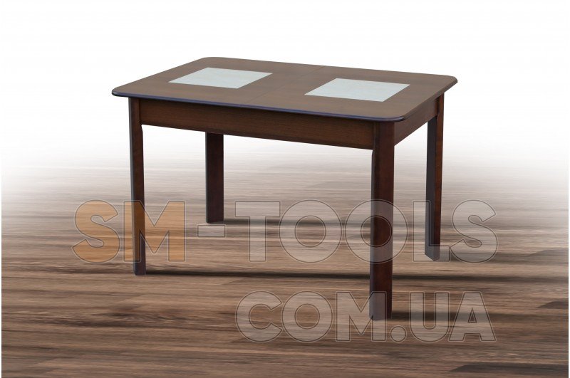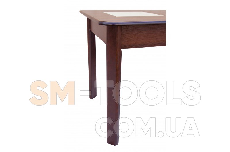 Стол обеденный Бостон достаточно компактный и хорошо впишется в небольшой кухне. Прямоугольная столешница стола со скругленными краями изготовлена из плиты МДФ, которая облицована искусственым шпоном и декорирована двумя плиточными вставками.