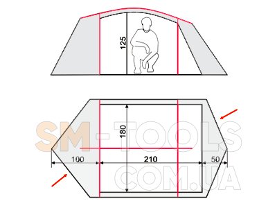 Устойчивая конструкция их трёх наружных дуг позволяет устанавливать тент без спального помещения, а также обеспечивает простую и быструю сборку и разборку всей палатки.