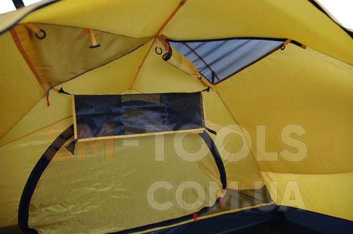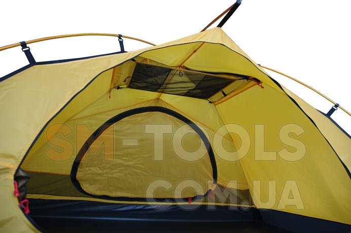 Практичная 2-х местная палатка, используемая в течение всего года. В больших тамбурах хватит места для снаряжения и туристической кухни. Два входа дают возможность прямого доступа в спальню и обеспечивают идеальную вентиляцию. Складывающаяся защитная "юбка" препятствует возможному попаданию пыли, снега и т.д.