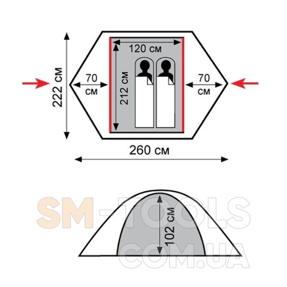 - Двухслойная палатка с двумя входами и 2 тамбурами