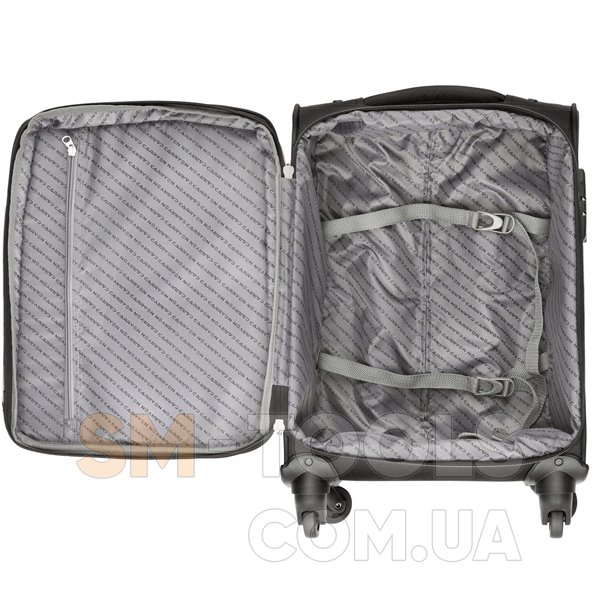 Эргономичная система выдвижной телескопической ручки с кнопочным фиксатором позволяет отрегулировать высоту выдвижной ручки для дополнительного удобства и комфорта пользователя. Внутренний объем разделен перегородкой на два отделения и имеет ремни для фиксации вещей и дополнительные карманы.