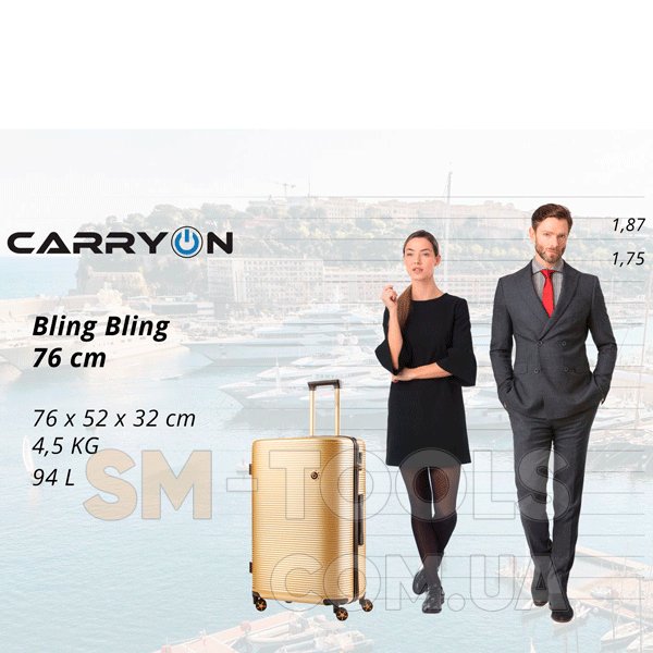 Коллекция Bling Bling бренда CarryOn объединяет в себе лучшие материалы с модным дизайном. Глянцевая поверхность чемодана восхищает своим блеском и красотой. Корпус чемодана выполнен из высокопрочного, комбинированного материала - поликарбоната (PС) и ABS-пластика.