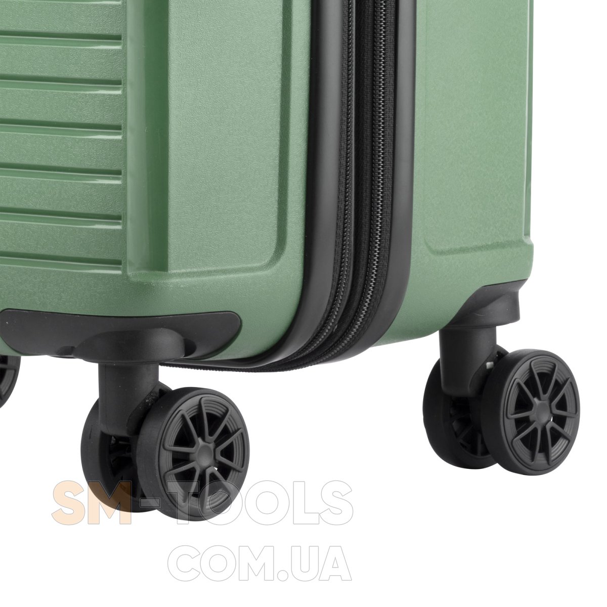 Чемодан оснащен четырьмя полноповоротными, спаренными колесами с возможностью независимого разворота каждого колеса на 360°. Системой предусмотрено равномерное перераспределения нагрузки на каждое колесо, что в свою очередь способствует плавному качению и маневренности чемодана, прилагая при этом минимум усилий. Колеса изготовлены из высокотемпературного термопластичного полиуретана (TPU). Материал обладает прочностью сравнимой с пластиком, гибкостью силикона, а так же имеет повышенную устойчивость к перепадам температур. Отличительной особенностью колес из TPU материала является снижение шума до минимума при качении чемодана по неровной поверхности. Благодаря устойчивости к истиранию материал колес отличается длительным сроком эксплуатации.