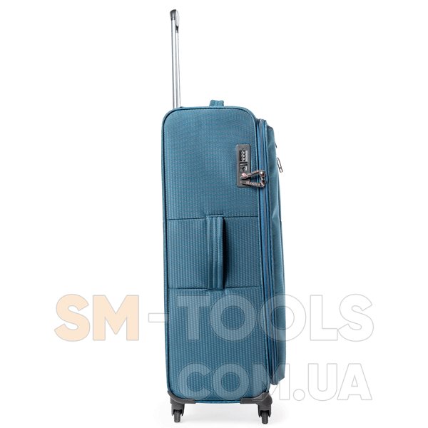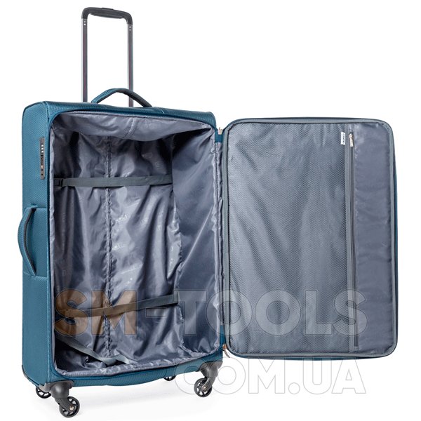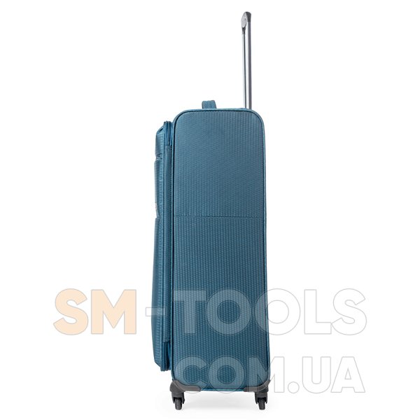 SOFT SHELL POLYESTER 500D - ткань из полиэстера с толщиной нити 500D, имеющая объемный крупный узор, создающий внешнюю игру света, и с внутреннее полиуретановое покрытие, защищающее содержимое чемодана от намокания во время дождя средней интенсивности. Также ткань обладает хорошей износостойкостью, и не разрушается под действием ультрафиолетового излучения.