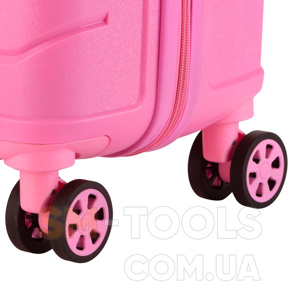 Чемодан оснащен четырьмя полноповоротными колесами с возможностью независимого разворота каждого колеса на 360°. Системой предусмотрено равномерное перераспределения нагрузки на каждое колесо, что в свою очередь способствует плавному качению и маневренности чемодана, прилагая при этом минимум усилий. Колеса изготовлены из высокотемпературного термопластичного полиуретана (TPU). Материал обладает прочностью сравнимой с пластиком, гибкостью силикона, а так же имеет повышенную устойчивость к перепадам температур. Отличительной особенностью колес из TPU материала является снижение шума до минимума при качении чемодана по неровной поверхности. Благодаря устойчивости к истиранию материал колес отличается длительным сроком эксплуатации.