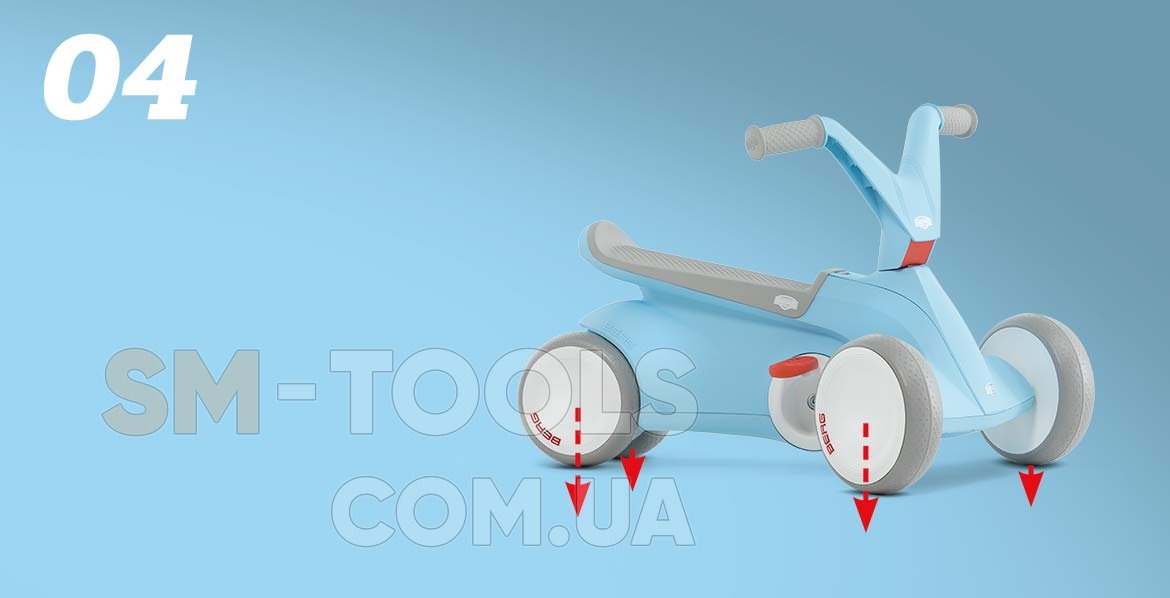 Несмотря на компактный размер и вес в упаковке чуть более 3 кг, Berg GO2 SparX Yellow , как и все педальные машинки в этой серии, является, одновременно, веломобилем, беговелом и толокаром. Для того, чтобы этот детский веломобиль выполнял сразу три этих функции, вам просто нужно дополнительно приобрести ручку родительского контроля.