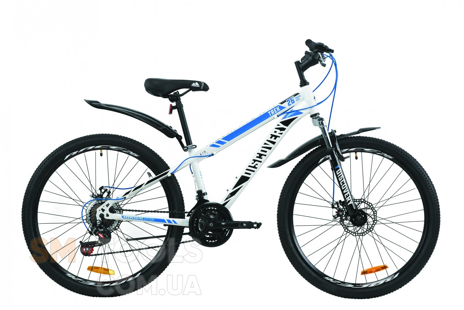 Велосипед Discovery Trek AM DD 26" 2020 / рама 13" бело-черный с синим OPS-DIS-26-271