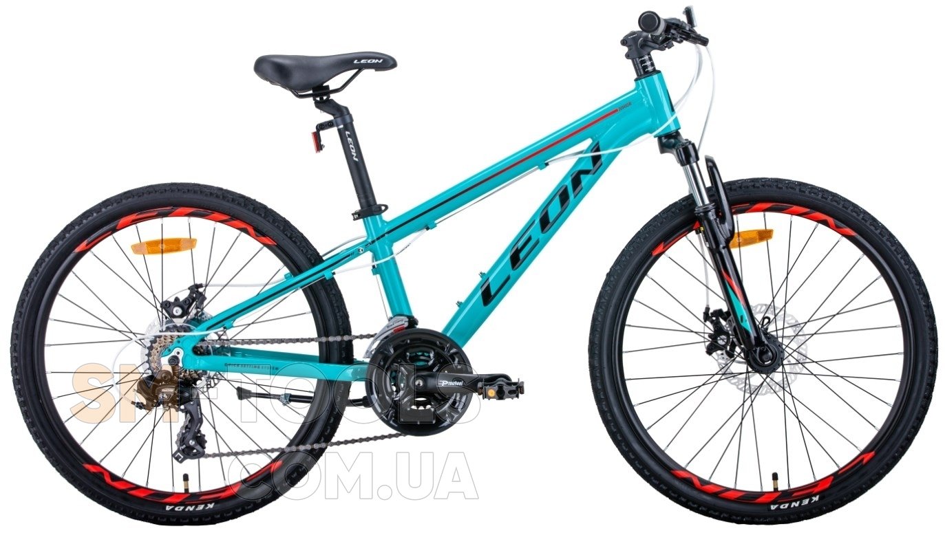 Велосипед Leon Junior AM DD 24" 2020 / рама 12,5" бирюзово-красный с черным OPS-LN-24-039