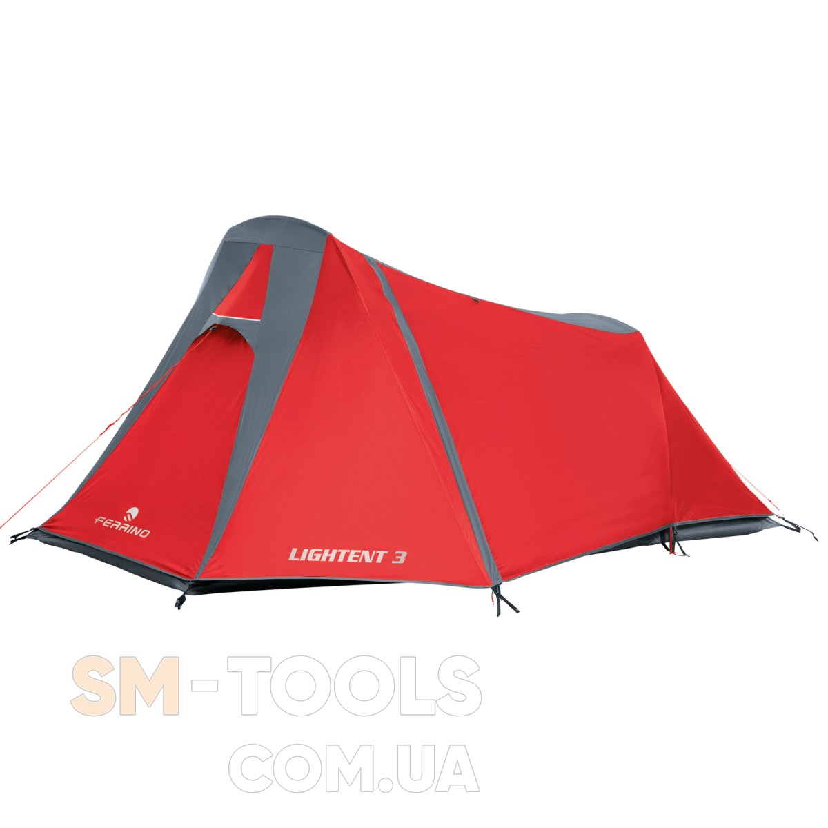 Палатка Ferrino Lightent 3 (8000) Red относится к серии ультралегких палаток Ferrino Lite. Данная модель имеет повышенную до 8000 мм в. ст. водонепроницаемость дна палатки и наиболее подойдет не только для летних, но и для весенне-осенних походов, когда потенциально возможно выпадение большого количества осадков. Внутренняя палатка полностью состоит из москитной сетки, её можно использовать отдельно от внешнего тента в теплые ночи. Внешний тент имеет ярко-красный цвет, таким образом палатка будет легко узнаваема и различима на фоне любого рельефа, а также на солнце будет нагреваться меньше, чем модели с темным тентом. Туннельная конструкция данной палатки обеспечивает минимальный вес при большом объеме внутреннего пространства, чему содействуют и предварительно изогнутые дуги. Установка такой палатки занимает минимум времени и потребует минимум места. Не смотря на то что палатка двухслойная и имеет два тамбура и два входа, ее вес в сборе составляет менее восьмисот грамм в расчете на человека. Внутренняя палатка практически полностью состоит из москитной сетки, её можно использовать отдельно от внешнего тента в теплые ночи. Внешний тент имеет водозащиту 3000 мм в. ст., что является вполне достаточным, при правильной установке, чтоб сохранить палатку внутри сухой во время дождя. Эффективная система вентиляции Camera Air дополнена двумя вентиляционными окнами, что поможет избежать образования конденсата. Чехол палатки имеет компрессионные стяжки, что позволяет добиться весьма компактных размеров упакованной палатки.