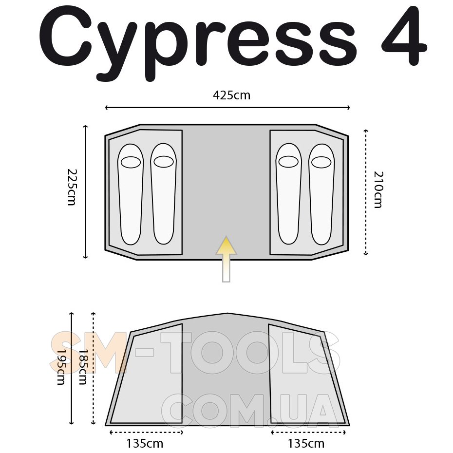 Внешняя палатка (Д х Ш х В): 425 х 225 х 195 см