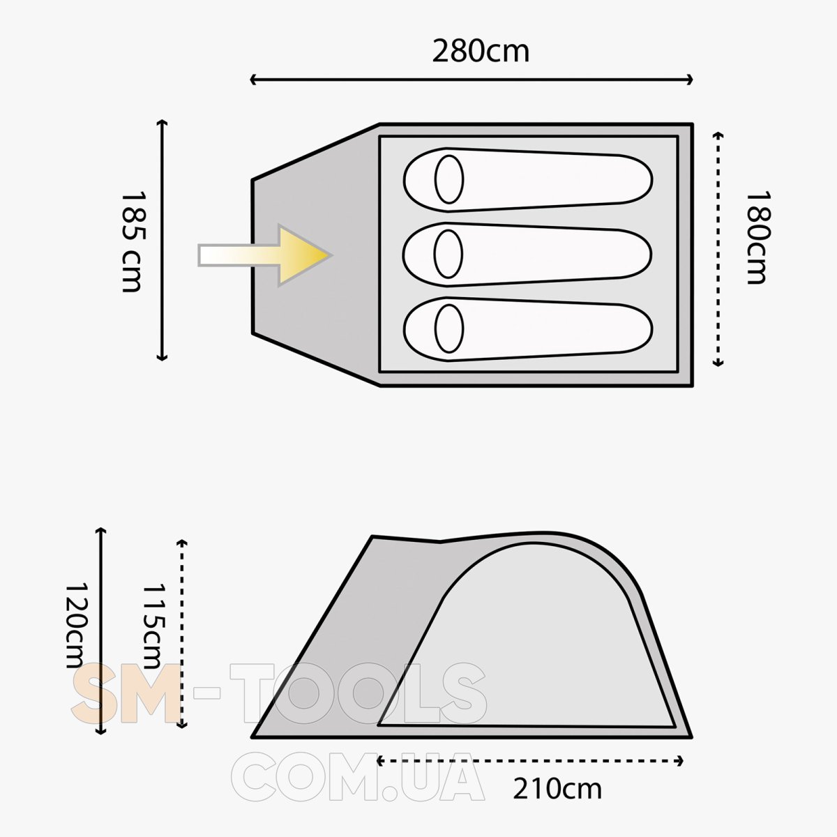 Внешняя палатка (Д х Ш х В): 280 х 185 х 120 см