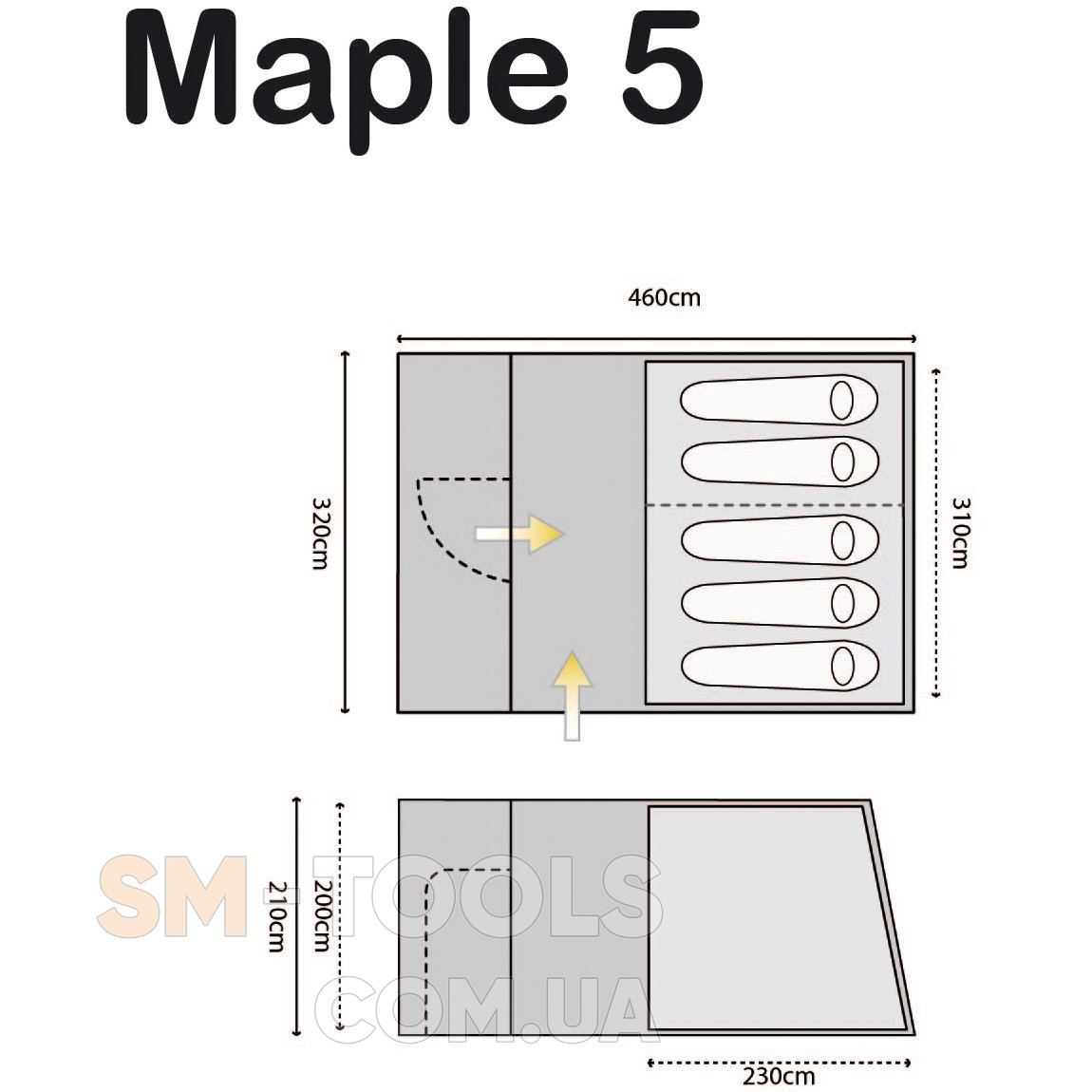 Что может быть лучше, чем ароматная чашечка кофе на открытой веранде с видом на горы или море. Осуществить это поможет туннельная палатка Highlander Maple 5 Teal с просторной верандой. Внутреннее пространство разделено на спальную зону и гостиную, в которой есть место для размещения личных вещей и туристической кухни. Палатку можно установить отдельно без спального отсека, если необходимо укрытие от солнца, дождя или помещение для праздничного обеда без необходимости ночлега. Наружный тент с проклеенными швами имеет водостойкость 3000 мм водяного столба, благодаря чему надежно защитит Вас от сильного дождя. Палатка выполнена из пожароустойчивого материала, комфортная и безопасная, идеально подходит для семьи из 5 человек.