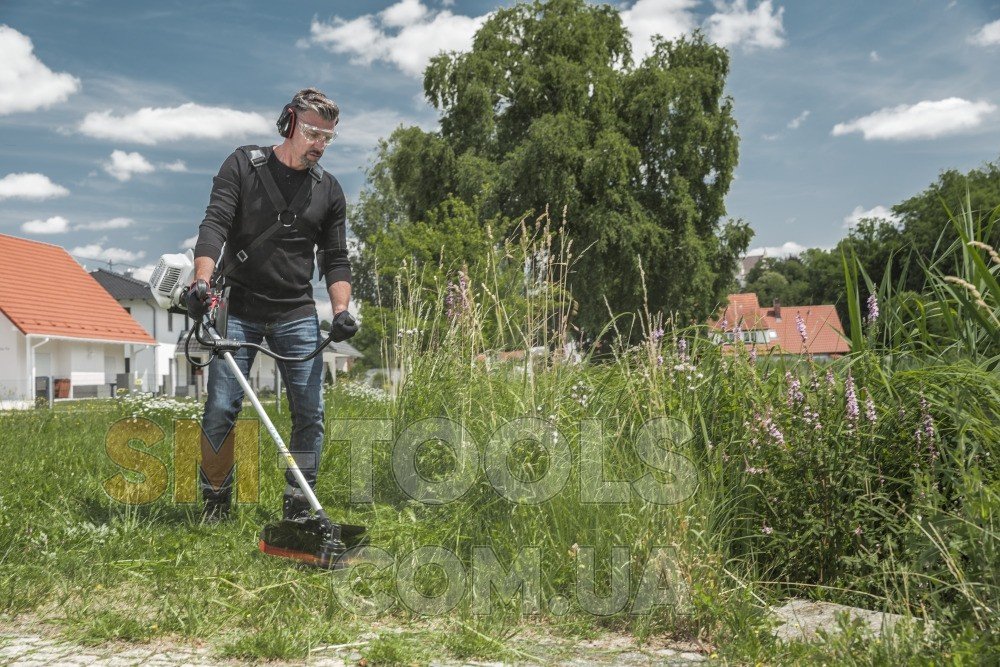 Мотокоса не залежить від часу заряду акумулятора та кабелів — Ваш плюс на великих газонах і віддалених ділянках.