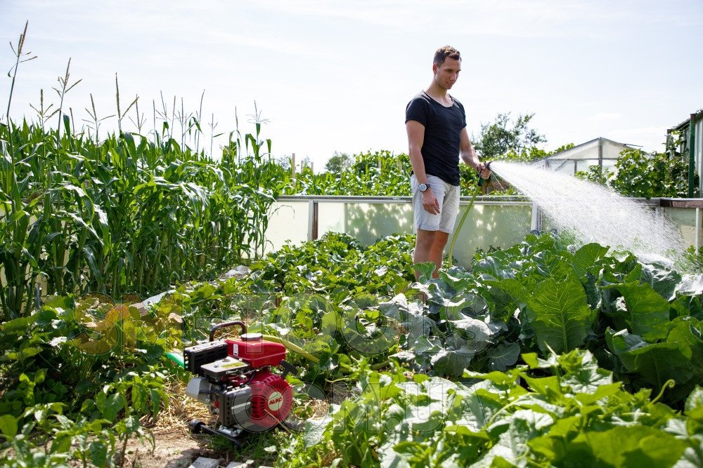 Потужна помпа з бензиновим двигуном внутрішнього згоряння (ДВЗ) для перекачування великих кількостей води. Легкий запуск з чотиритактним двигуном. Ручка для зручного транспортування. Зручне застосування без необхідності підключення до мережі електроживлення (особливо важливо в умовах повені).Великі широкі опорні ніжки для стійкості. При зрошенні садової ділянки, для відкачування води з ставків, плавальних басейнів і при затопленні підвалу - бензинова помпа допоможе Вам. Вона завжди готова до роботи навіть при відсутності джерел електроживлення. Чотиритактний бензиновий двигун внутрішнього згоряння AL-KO з верхнім розташуванням клапанів (технологія OHV) має відмінний коефіцієнт корисної дії (ККД). Це проявляється в великій потужності при одночасно низькому споживанні палива. Бензинова мотопомпа AL-KO BMP 14000 відповідає найвищим вимогам і завжди розвиває максимальну потужність навіть при тривалій і безперервній роботі. Ця помпа з бензиновим ДВЗ розвиває велику потужність 1,2 кВт і може качати воду з глибини до 6м на висоту до 36 м. Завдяки особливо довговічній і ефективній насосній технології AL-KO, а також наявності бензобака з ємністю 1,4 літра, ця помпа стає ідеальним вибором для вирішення численних завдань, таких як осушення і видалення зайвої води. Для простоти технічного обслуговування, отвір для заливки масла розташований в легкодоступному місці на корпусі помпи. Діаметр гнізд підключення з боку всмоктування і з напірної сторони становить 1 дюйм (33,3 мм). Щоб забезпечити легкий запуск, потрібно заповнити насосний контур водою. Для легкого і зручного заповнення водою, зверху помпи розташована заправна воронка. Цей насос перекачує до 14 000 л/год.