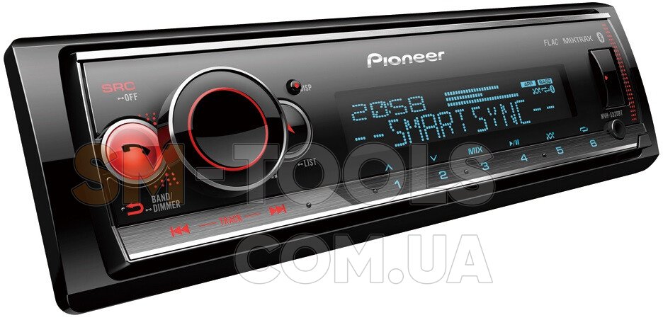 Приемник 1-DIN с Bluetooth, многоцветной подсветкой, USB, Spotify, приложением Pioneer Smart Sync и совместимость с устройствами Apple и Android.