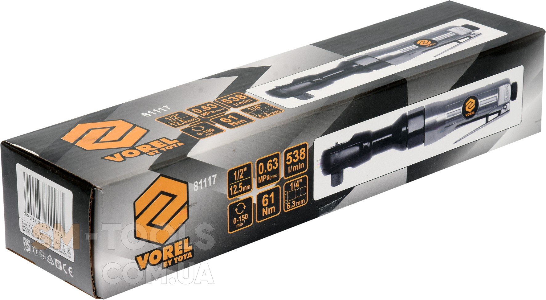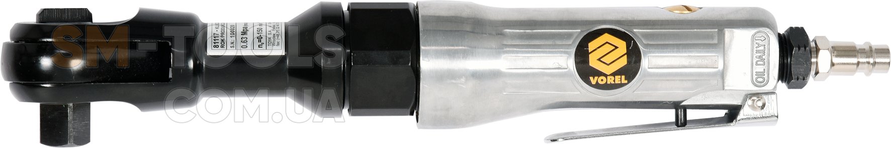 Пневматическая трещотка VOREL применяется для работы с торцевыми головками, насадками, удлинителями и переходниками. С помощью торцовых головок, которые надеваются на поводок, можно прикручивать и закручивать болты, особенно там, где требуется высокий момент вращения.