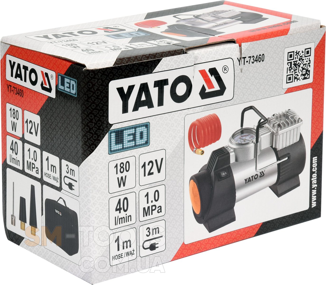 Компактный компрессор YATO YT-73460 с высокоточным манометром предназначен для накачки колес и камер, оборудованных клапаном в автомобилях, мотоциклах и велосипедах, а также – с помощью съемных наконечников – матрасов, надувных лодок, мячей. Отлично служит в качестве резервного источника сжатого воздуха.