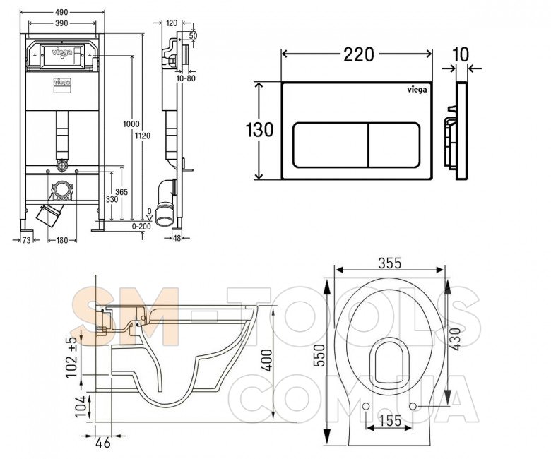 Описание Набор инсталляция VIEGA Prevista Dry с унитазом Volle Iberia Rimless 13-21-124+771973+773717+678630: