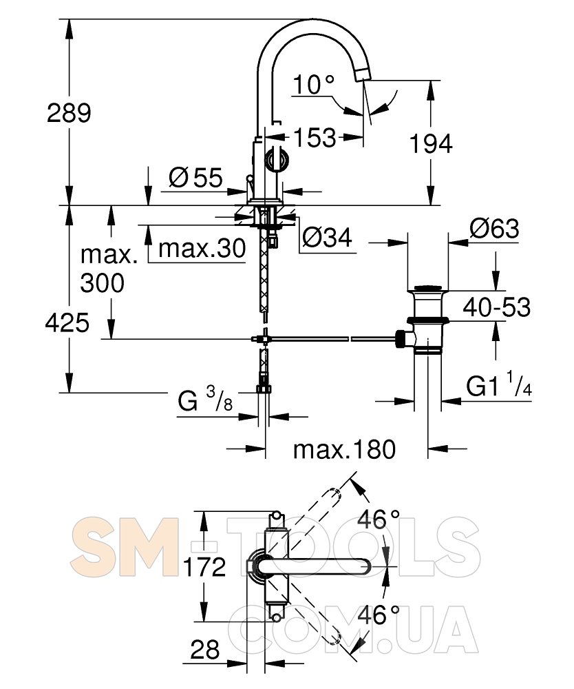 Его блестящее хромовое покрытие GROHE StarLight® гарантирует, что смеситель будет выделяться в вашем интерьере. Его излив очень практичен, т. к. имеет угол поворота 180 °. Помыть голову будет очень просто, также как и наполнить вазу.