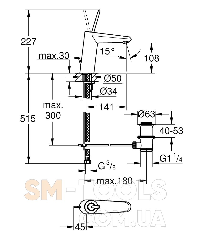 Высота смесителя: 227 мм