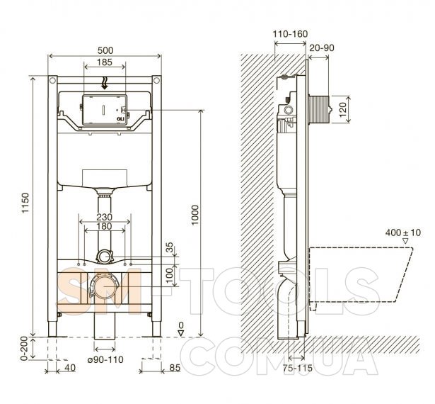 - Количество режимов смыва: двухрежимная система смыва (9/4,5 л или 6/3 л) или система смыва старт/стоп