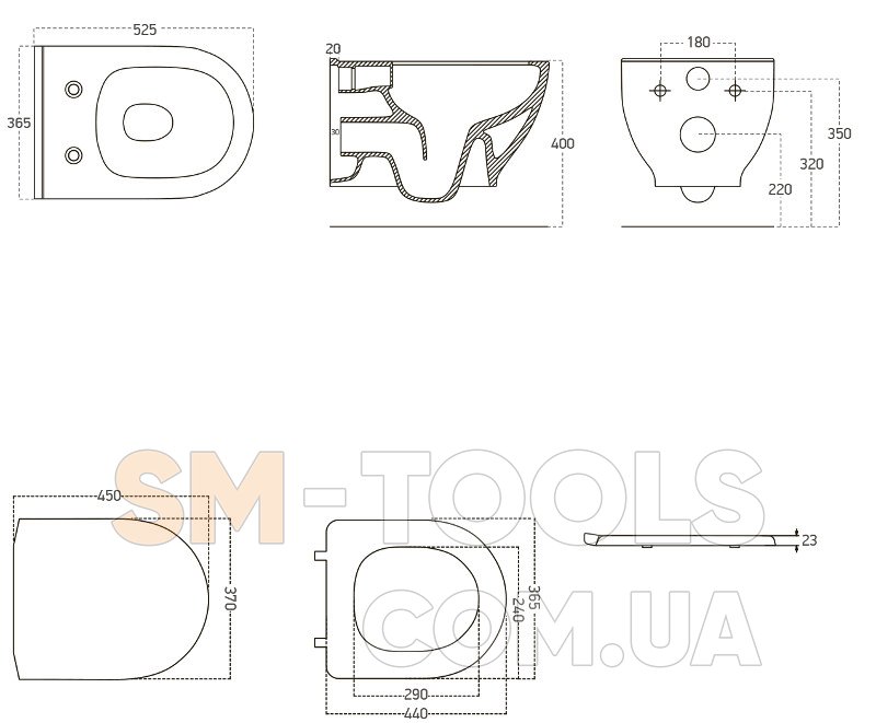 - Volle OLIVA безободковый унитаз 525*365*400мм подвесной Rimless в комплекте с сидением Slim slow-closing