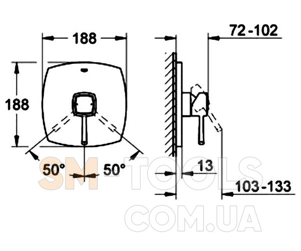 Внешняя часть смесителя для душа настенного монтажа GROHE GRANDERA.