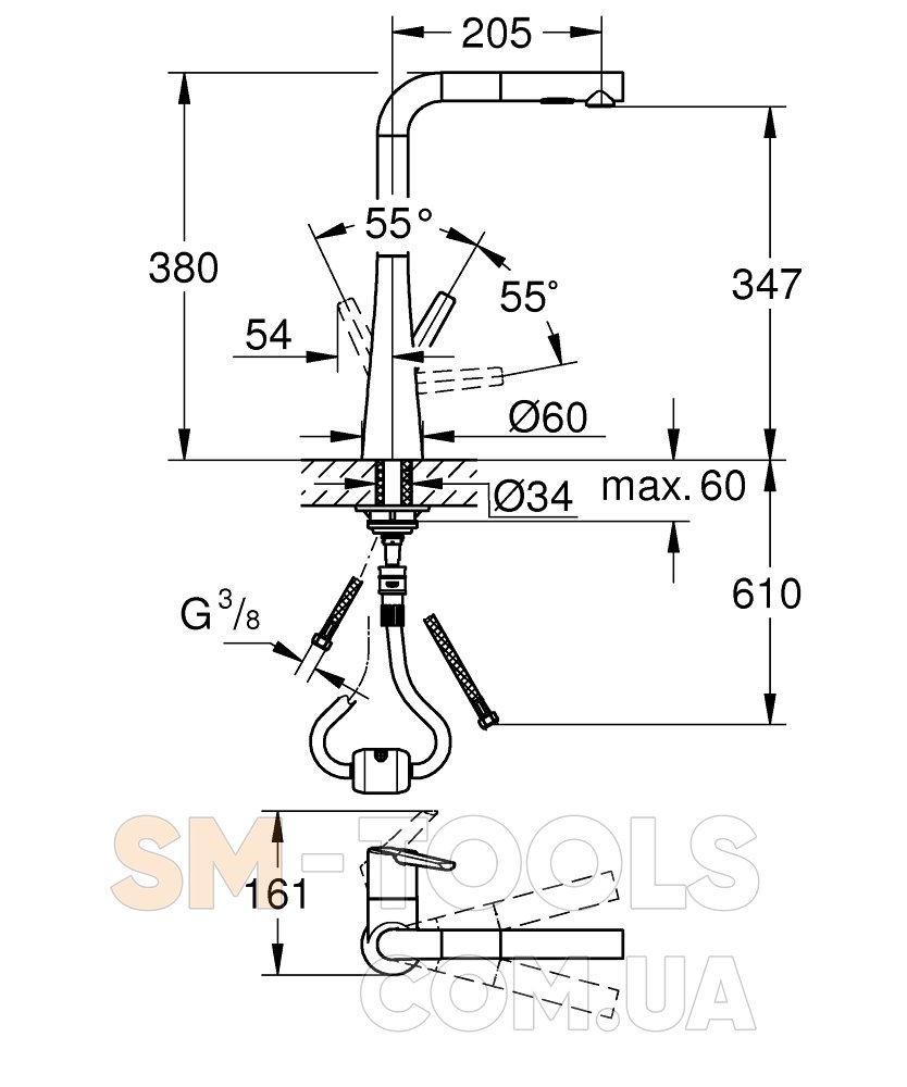 - GROHE Magnetic Docking гарантирует легкое вытяжение и возврат головки аэратора в исходное положение