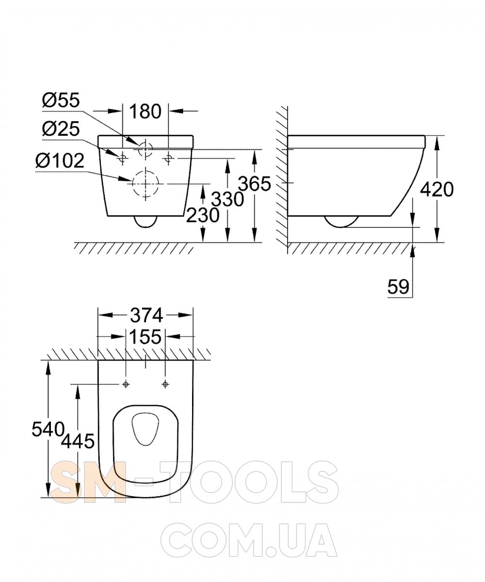 Подходящие сиденья: GROHE Euro Ceramic 39330000 (с микролифтом) или GROHE Euro Ceramic 39331000 - приобретаются отдельно