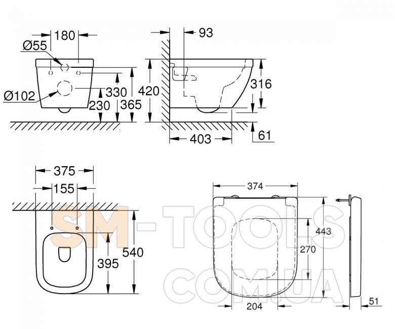 Унитаз с сиденьем Grohe Euro Ceramic 39538000+39330001