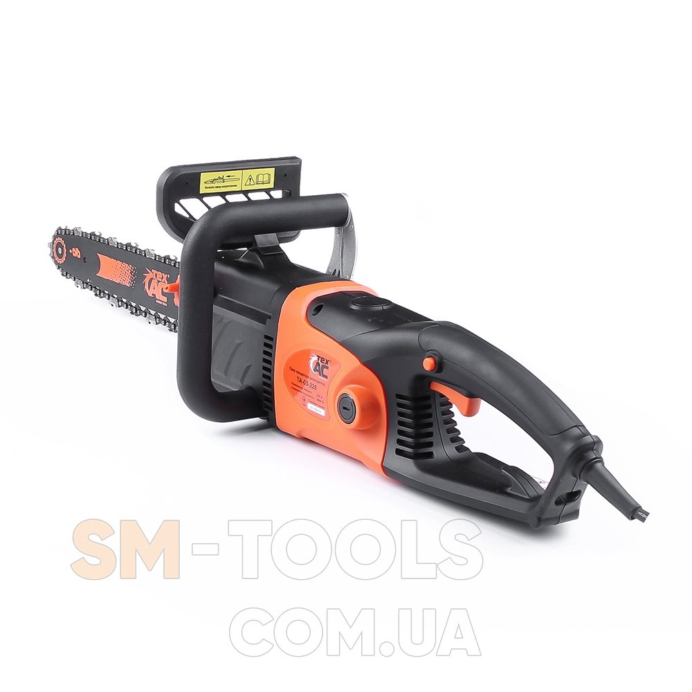 В электропиле Тех.АС ТА-03-228 установлена ключевая система натяжения цепи. Натяжение происходит при помощи болта-натяжителя. Проворачивая болт, происходит ослабление или натяжение цепи. Установленная прижимная крышка фиксируется на одном болте при помощи прижимной гайки. Перед тем как ослабить или подтянуть цепь необходимо ослабить прижимную гаку для ослабления фиксации шины, что позволит произвести ее смещение.