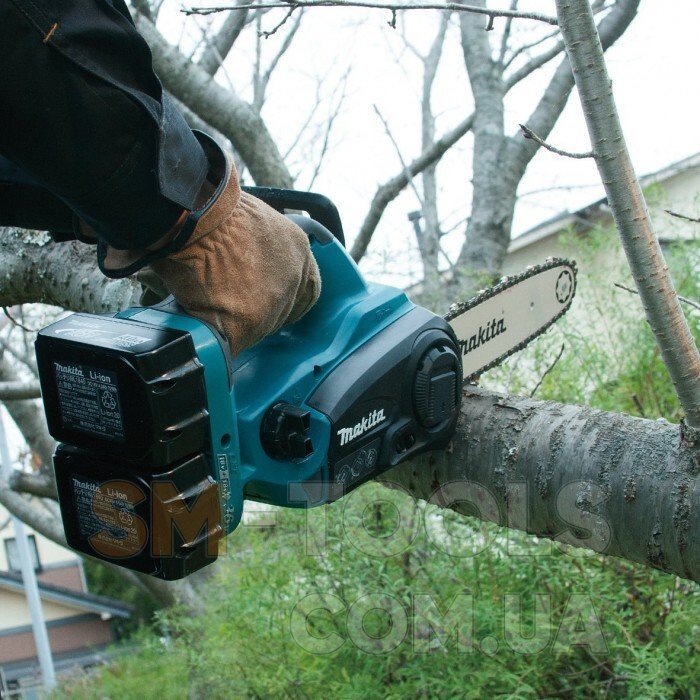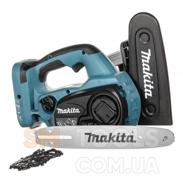 Аккумуляторная цепная пила Makita DUC252Z - компактная и удобная цепная бытовая пила с длиной шины 25 см. Инструмент чрезвычайно безопасный в работе благодаря инерционному тормозу цепи и электротормозу двигателя, а также функции плавного пуска. Изготовители пилы оснастили ее защитой для рук и предохранительным выключателем с функцией блокировки запуска инструмента.