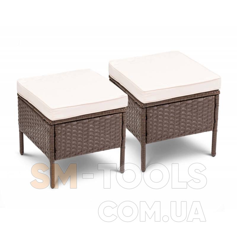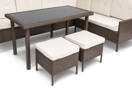 Каркас изготовлен из прочной стали, которая обеспечивает надежную защиту от преждевременной коррозии и гарантирует всему набору длительный срок службы. Верхнее покрытие, сделанное из добротного ротанга, отлично противостоит ультрафиолету, влаге, перепадам температур и любым другим погодным условиям.