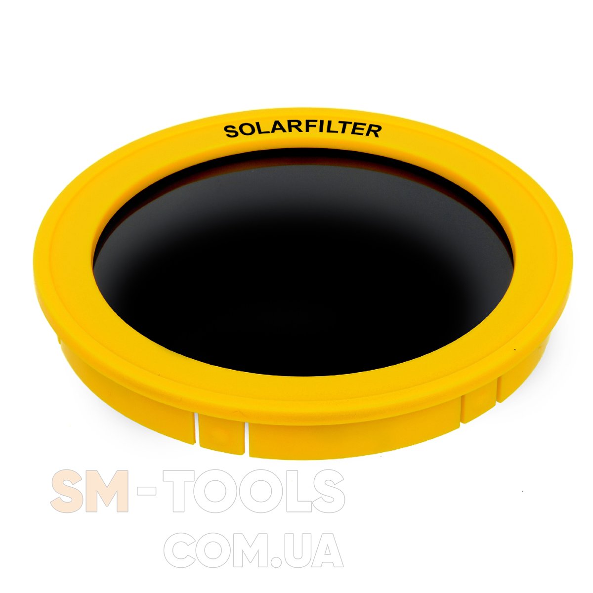 В комплектации поставляется специальный солнечный фильтр, защищающий глаза от проникновения ультрафиолетового, инфракрасного и видимого сверхяркого солнечного излучения, пропуская лишь то количество видимых световых волн, которое достаточно для формирования качественного изображения Солнца. Фильтр тестирован независимой организацией обеспечения качества продукции и имеет европейский сертификат соответствия CE.