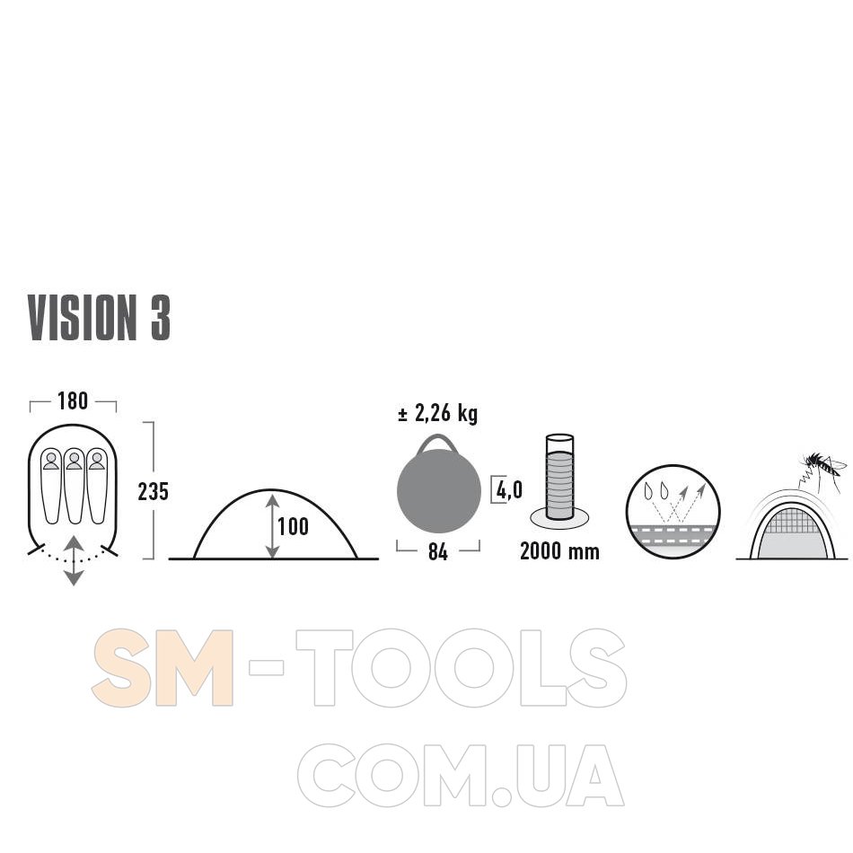 Легкая однослойная трехместная фестивальная палатка High Peak Vision 3 с инновационной системой быстрой установки Pop Up отлично подойдет для отдыха на природе в теплое время года. Широкое спальное место гарантирует комфортный сон после активного дня. Регулируемые вентиляционные окна и москитная сетка на входе обеспечат приток свежего воздуха и защиту от назойливых насекомых.