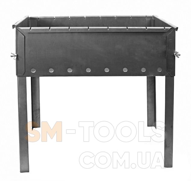 Мангал для приготовления шашлыков 8-местный выполнен из стали толщиной 1 мм, надежная конструкция, компактный при транспортировке.