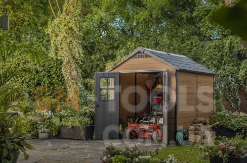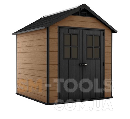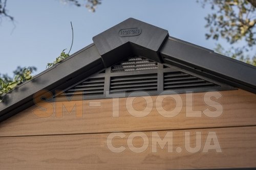 Сарай (Садовый домик) Newton 759 - сарай премиум-класса, обеспечивает долговечность и безопасность, необходимые для защиты инструментов, мебели и оборудования. Newton 759 представляет собой настоящий прорыв в дизайне сарая. Используя панели, изготовленные из инновационного древесно-пластикового композита (WPC), стены сарая имеют эстетичный вид и ощущение натурального дерева, обеспечивая при этом все преимущества смолы. Полностью не требует обслуживания, никогда не ржавеет, не гниет и не отслаивается. Благодаря укрепленной конструкции Newton 759 выдержит даже самый сильный дождь, ветер и снег. Большие окна, светопрозрачная вставка во всю длину крыши и встроенная вентиляция обеспечивают свет и приток свежего воздуха. Сверхпрочные панели пола выдерживают большой вес.