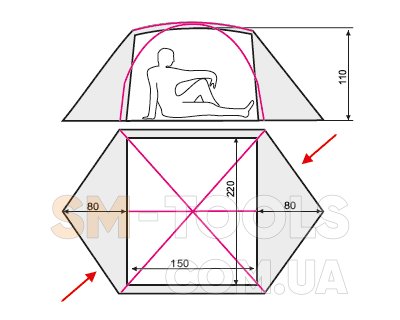 Практичная трехсезонная 2/3-х местная палатка. Усовершенствованная форма каркаса максимально увеличивает объем спального помещения.