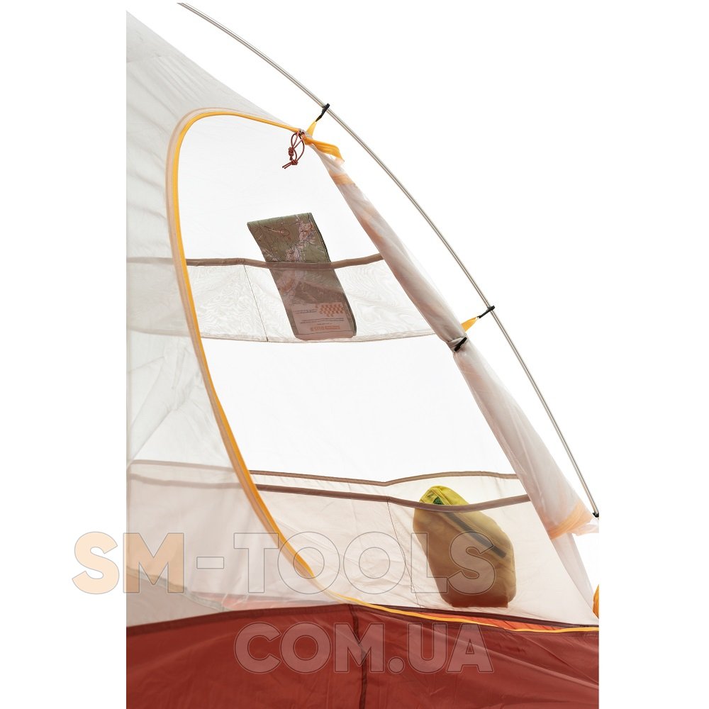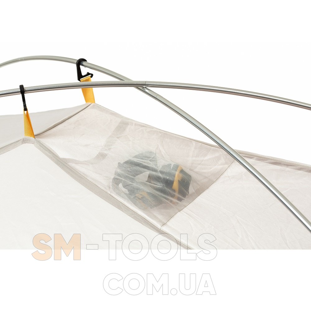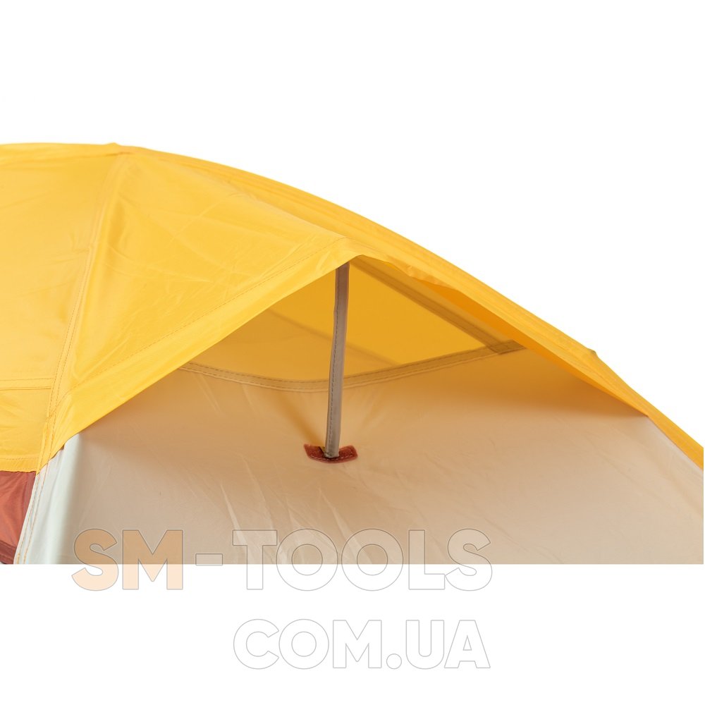 Вход один, он удобный и широкий - в палатку легко попасть. Благодаря большой площади сетки на внутреннем тенте, обеспечивается отличная вентиляция (нет ощущения «теплицы»). Дуги изготовлены из прочного дюралюминия. Асимметричное пересечения дуг добавляет больше пространства в палатке. Внутри есть четыре большие карманы и отдельное отделение для фонарика или телефона в верхней части тента.