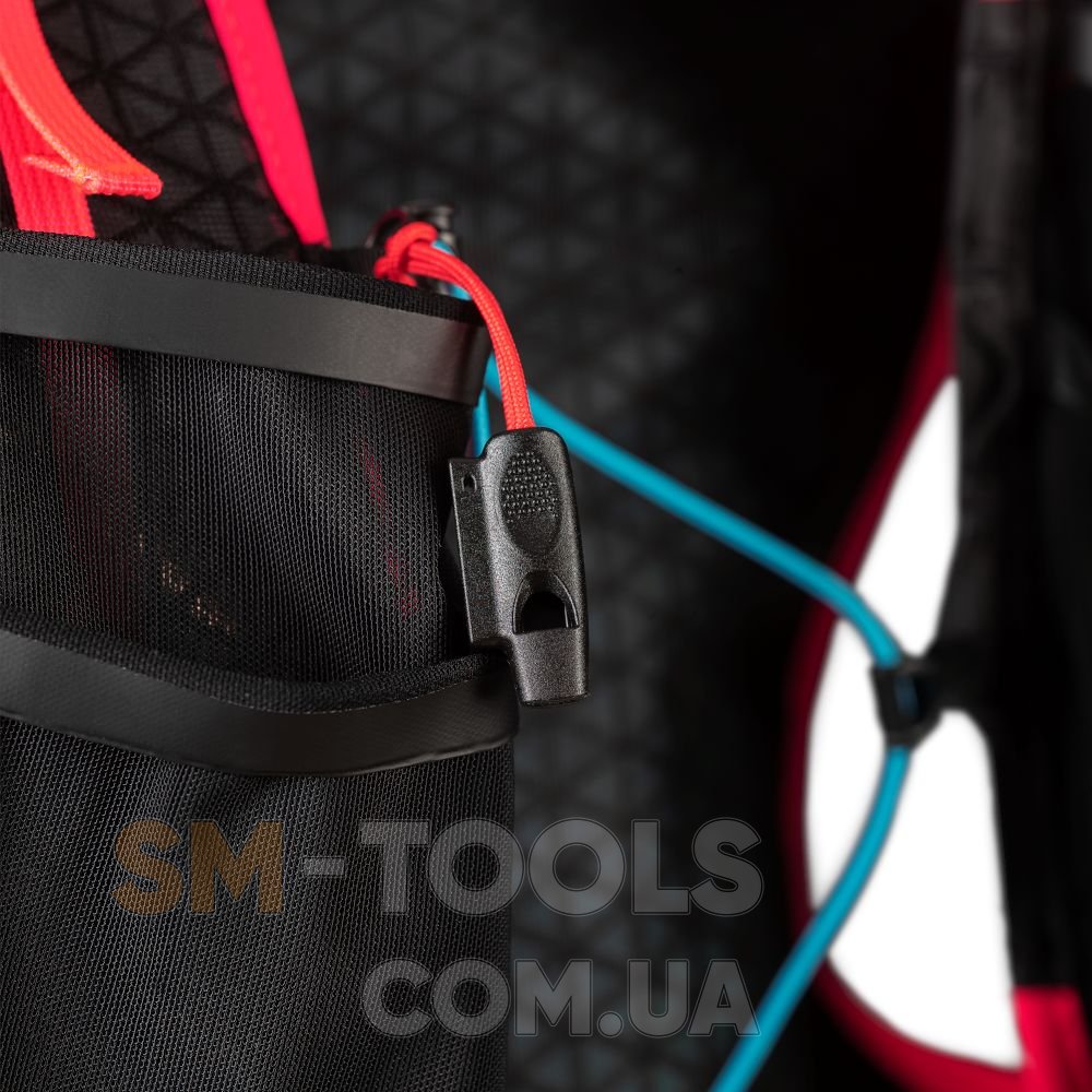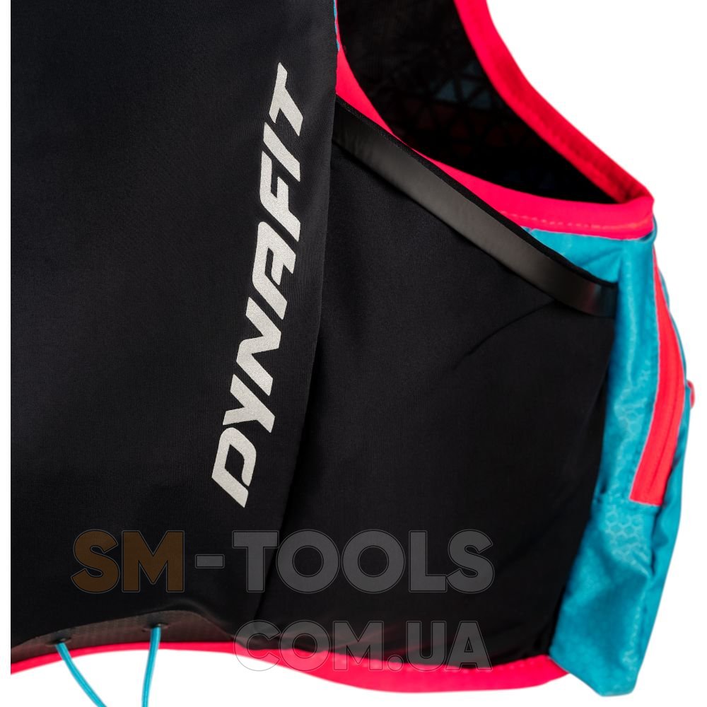 Новый рюкзак для трейлраннинга от Dynafit объемом 9 литров. Это модель 2020 года. Она совместима с питьевой системой. Для особого удобства предусмотрена фиксация SpeedBottle: можно закрепить систему сбоку рюкзака. Наконечники беговых палок легко поместить в специальный карман, а потом зафиксировать на рюкзаке, используя эластичный шнур. У рюкзака есть карман для хранения геля, карман на молнии и карман для мягкой бутылки. Отражающие элементы улучшают видимость при слабом освещении. Свисток также повышает безопасность и позволяет привлечь к себе внимание. Ткань Performance имеет водонепроницаемую мембрану, у нее также герметичные швы, поэтому рюкзаку не страшна непогода.