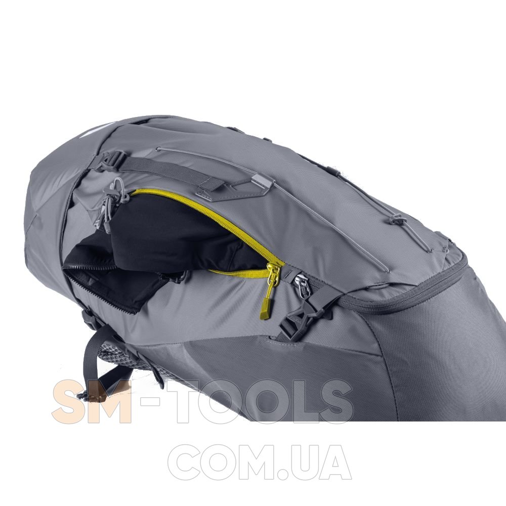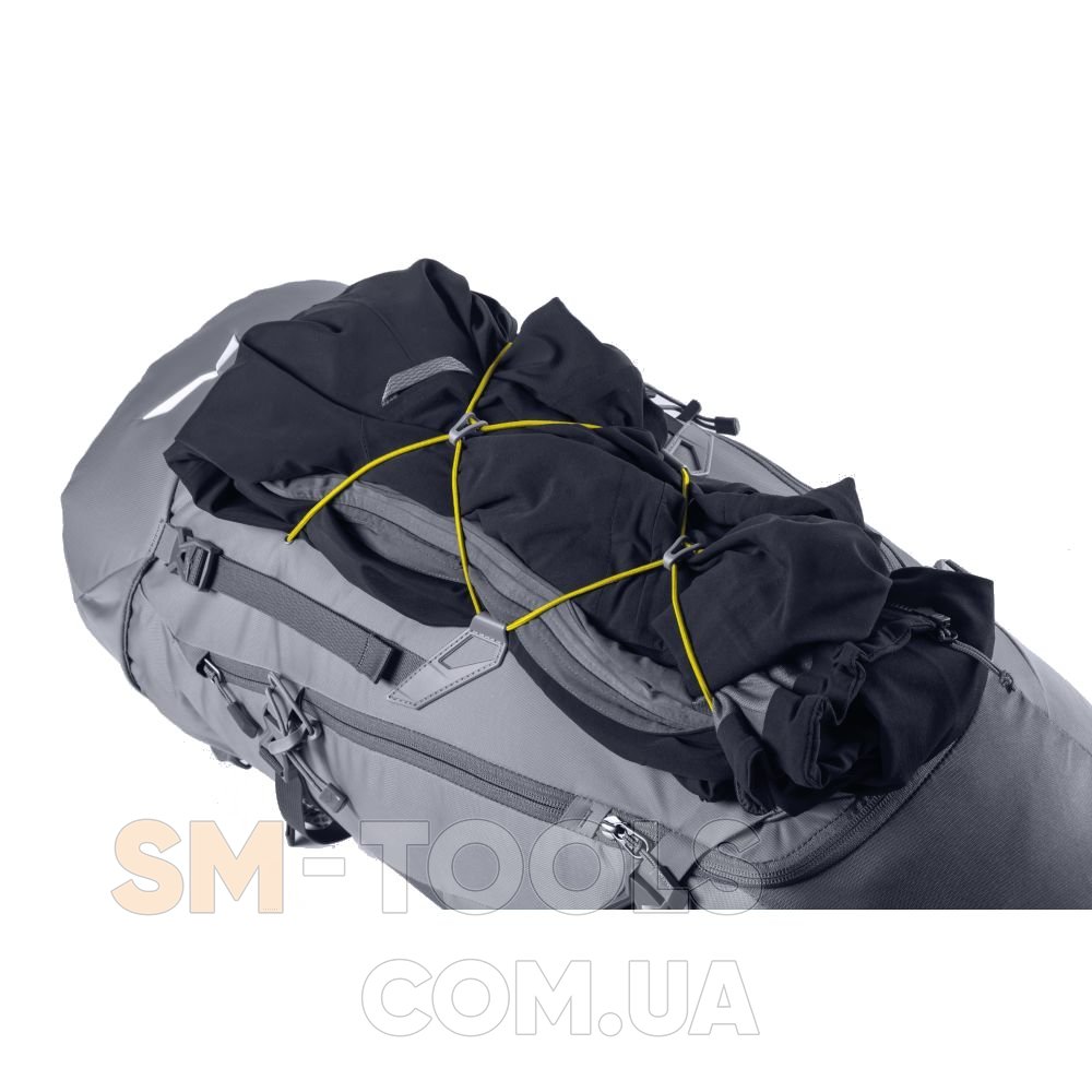 - специальные стяжки под верхним клапаном для фиксации альпинистических тросов и верёвок
