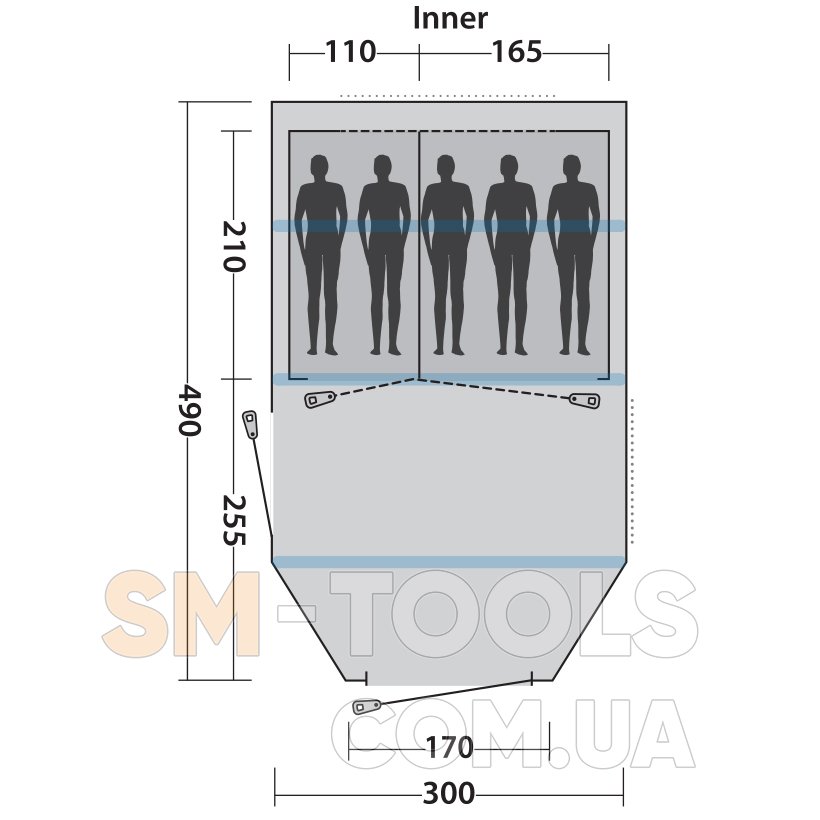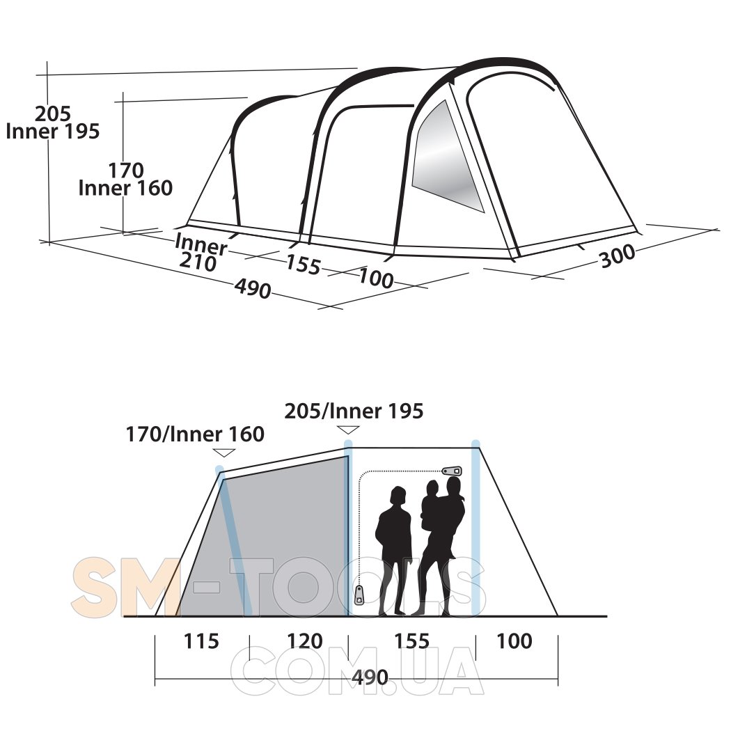 Внешний тент (Д х Ш х В): 490 х 300 х 205 см