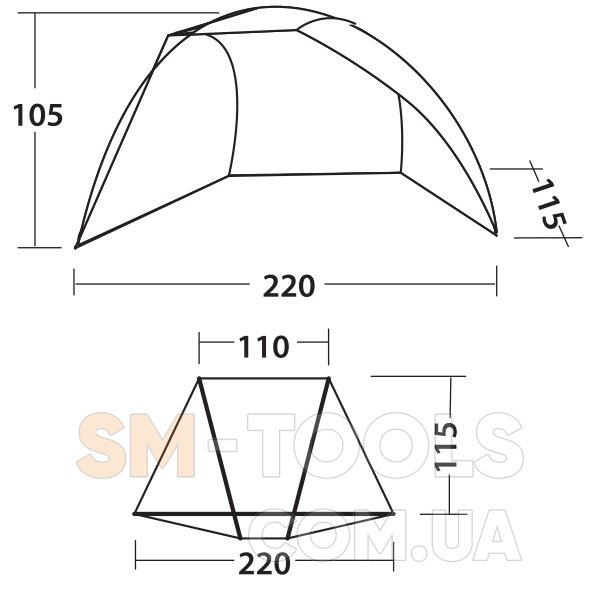 Палатка (Д х Ш х В): 115 х 220 х 105 см