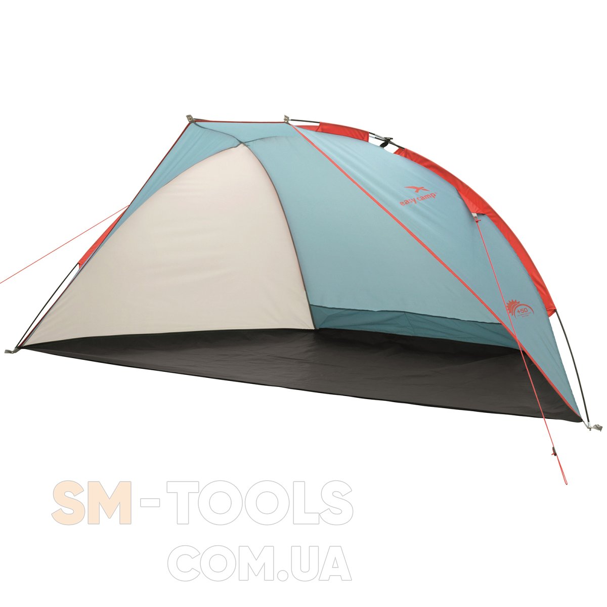 Easy Camp Beach - великолепное укрытие от палящего солнца и горячего песка. Современная ткань также справится с легким дождем и небольшим ветром, обеспечивая отличную защиту для всей семьи. Интегрированный пол помогает сохранять Вашу зону отдыха без песка, предотвращая его появление в солнцезащитном креме и сэндвичах. Открытая передняя часть позволит Вам наслаждаться видами и следить за своими детьми. Оттяжки можно использовать в ветреные дни, а красочная сумка для переноски облегчает транспортировку.