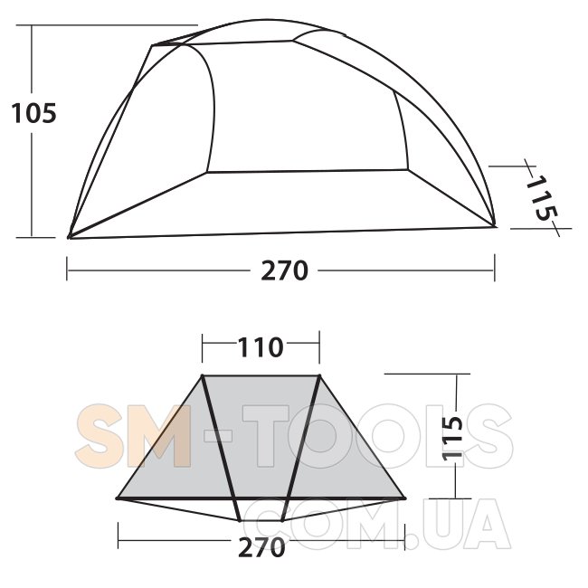 Палатка (Д х Ш х В): 115 х 270 х 105 см