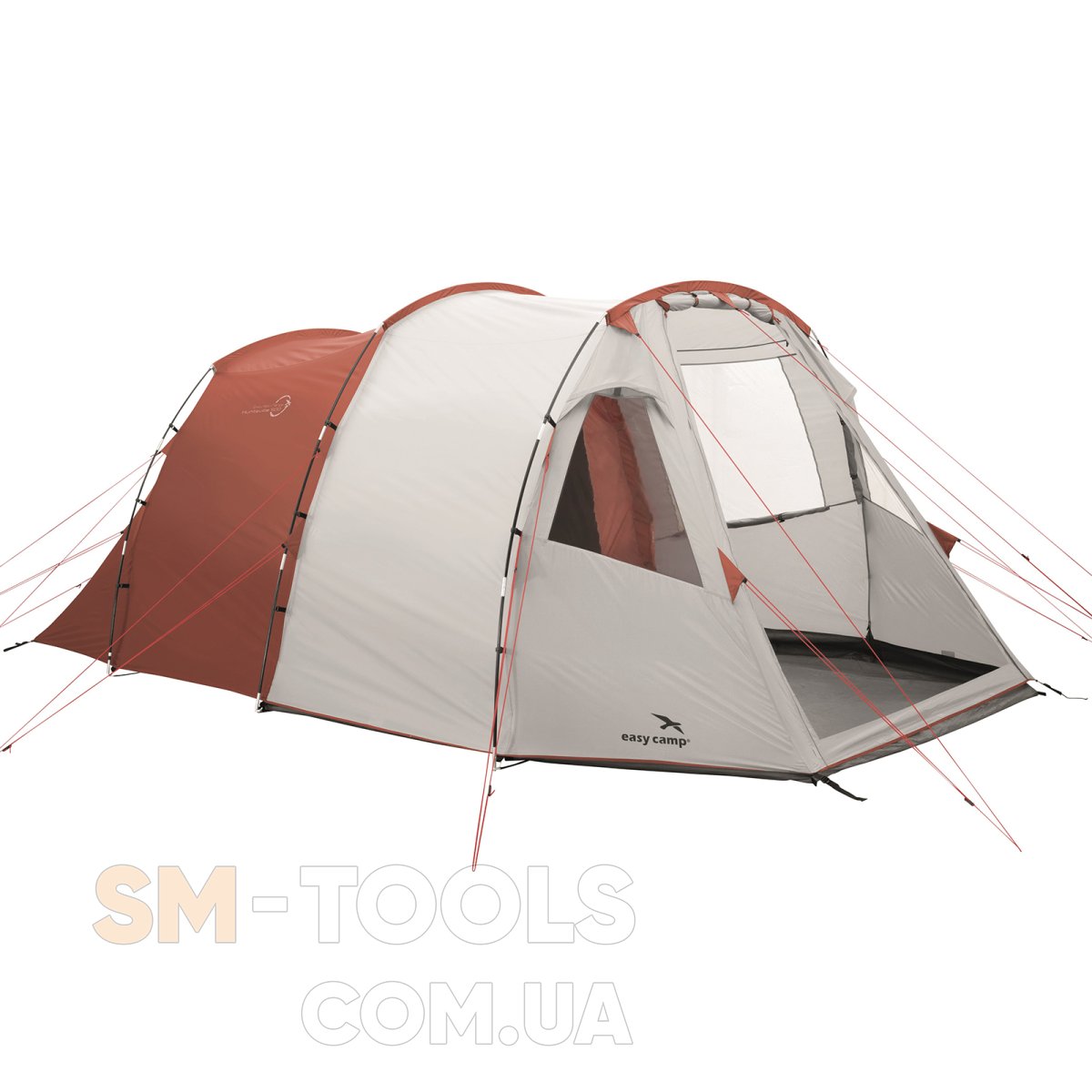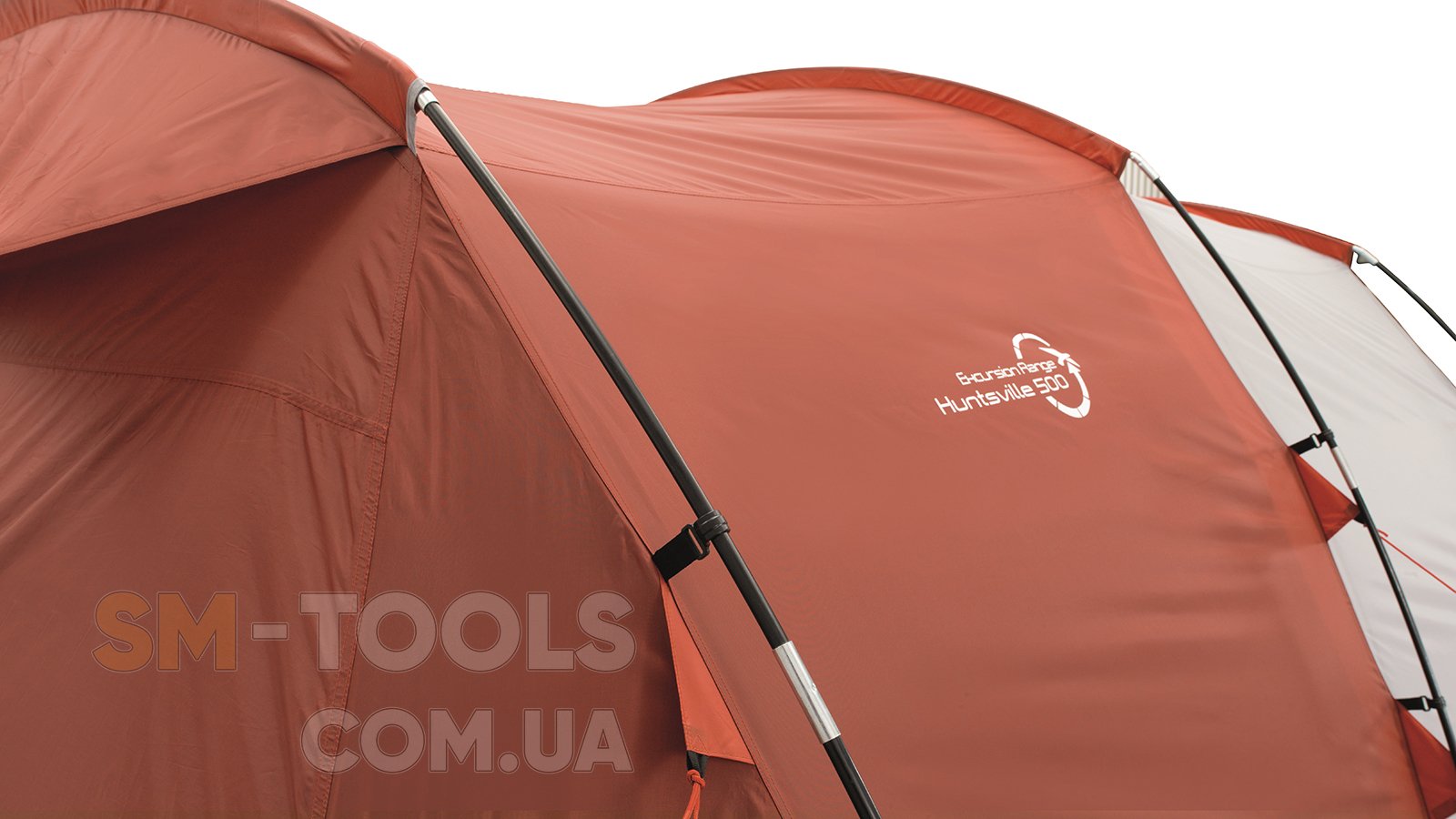 Easy Camp Huntsville 500 - пятиместная туннельная палатка с просторной жилой зоной и двумя затемненными раздельными спальнями со съемной перегородкой. Предварительно изогнутые дуги обеспечивают достаточную высоту потолка. Просторная гостиная с большим окном для обзора и полностью сетчатой входной дверью, защищающей от назойливых насекомых. Задняя вентиляционная панель и передние вентиляционные отсеки, а также сетчатые панели на дверях внутренней палатки обеспечивают отличную циркуляцию воздуха и избавляют от конденсата. Полноразмерный съемный пол гостиной может быть легко снят для уборки. Занавески на окнах способствуют уединению в случае необходимости. Easy Camp Huntsville 500 идеально подходит для семейного отдыха.