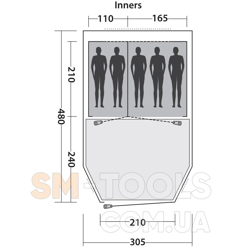 Внутренняя палатка (Д х Ш х В): 210 х 275 х 190 см